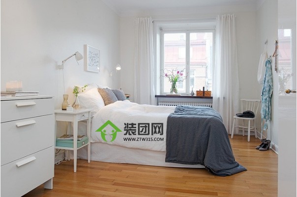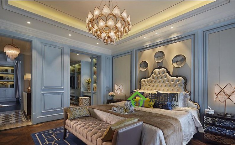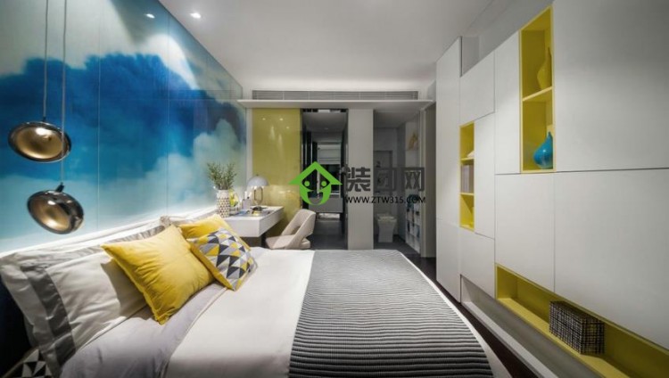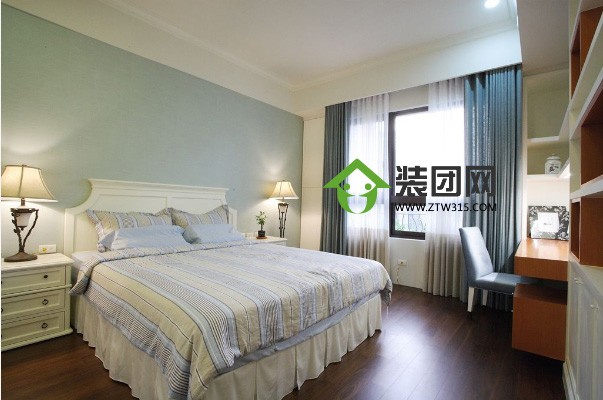 在卧室中,床所占的面积比较大,所以床在卧室中的位置要优先考虑。确定了床的位置、风格和色彩之后,卧室设计的其余部分就可随之展开。由于大部分家庭卧室面积有限,因此在卧室中不要摆放过多家具,以免造成压抑感。